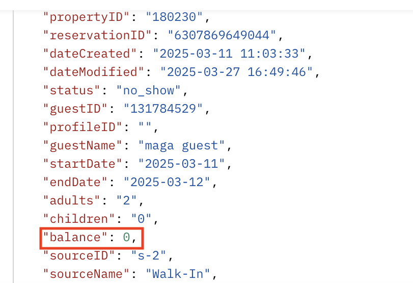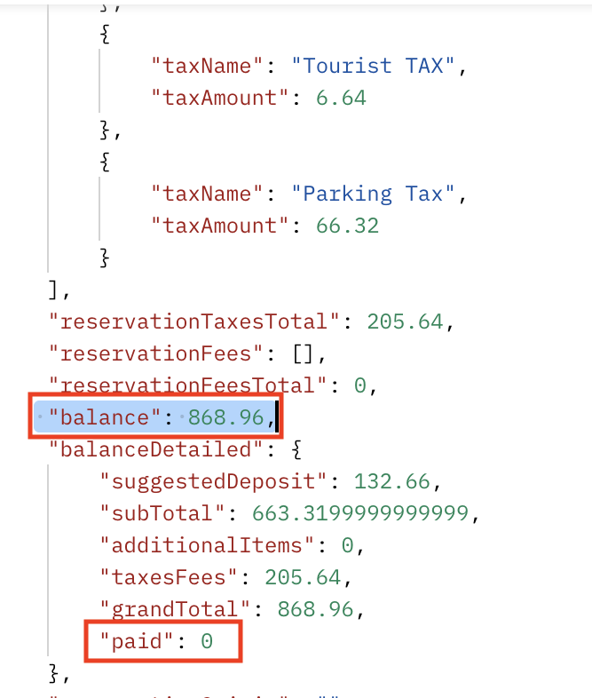 - You can also use getReservations if you're only interested in the balance/outstanding payment information: